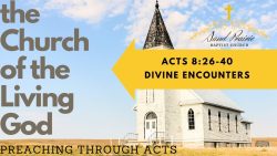 Acts 8:26-40 Divine Encounters September 1, 2024 Joshua Price Sand Prairie Baptist Church Video This text is a great model for the church. Divine encounters have been rare in the church and there are reasons for that. In other cases, they appear to run rampant but are often falsely represented and not divine at all. SHARE ON Twitter Facebook Buffer LinkedIn Pin It Leave a Reply Cancel replyYour email address will not be published. Required fields are marked *Comment * Name * Email * Website Δ Continue Reading Acts 8:9-23 Recognizing False Conversions Acts 9:1-9 God’s Power on Display
